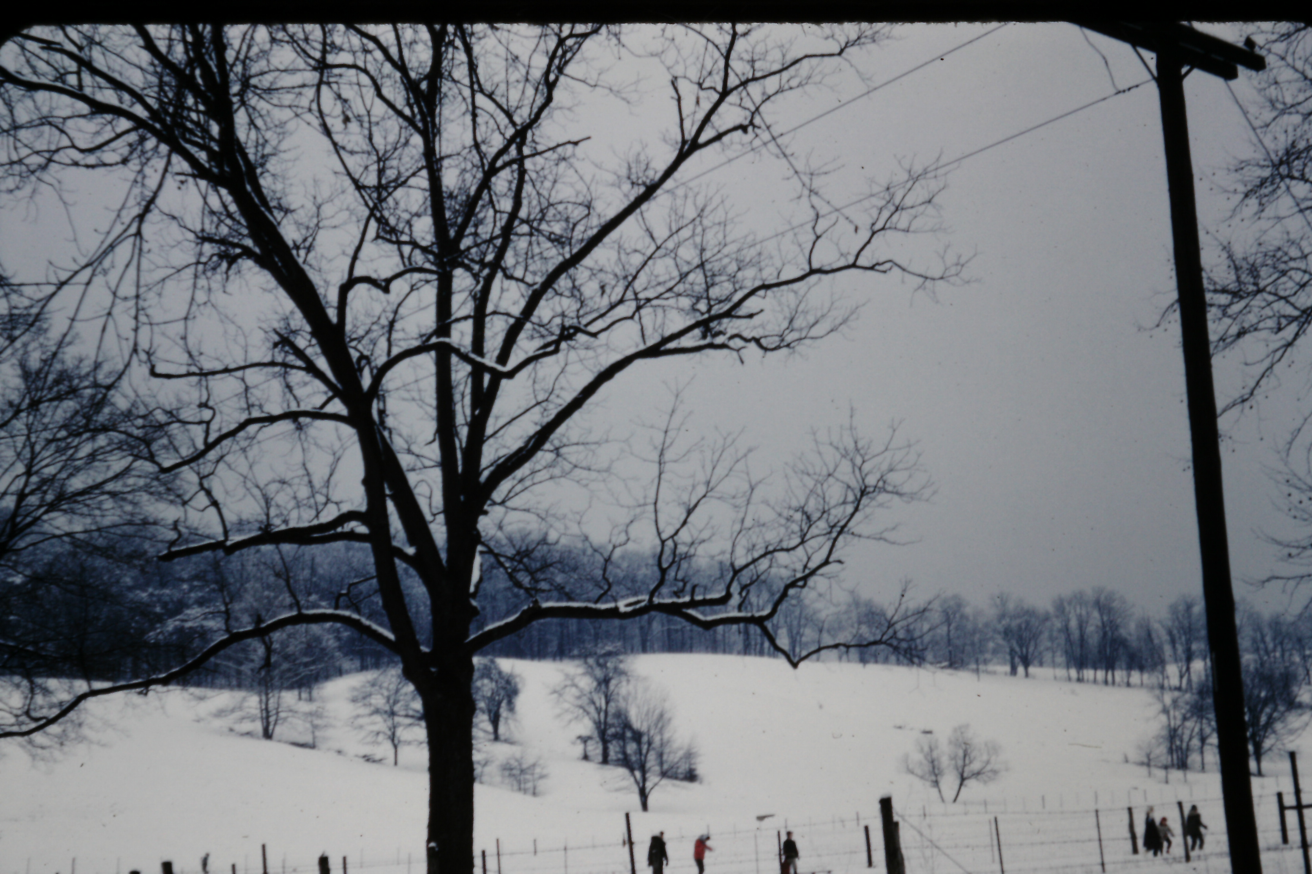 1961 Sled riding on Cunningham Hill