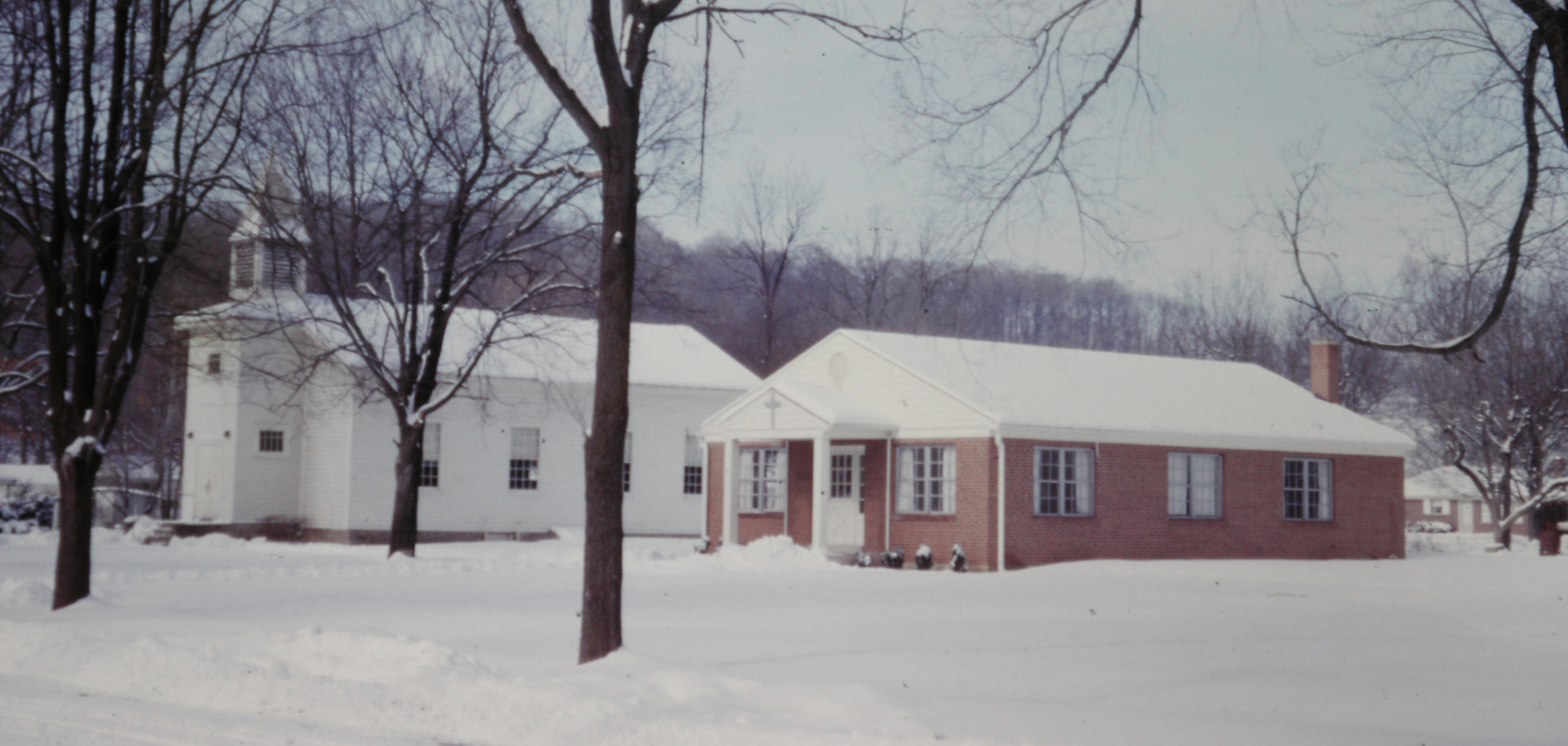 Methodist Church and Sunday school in snow